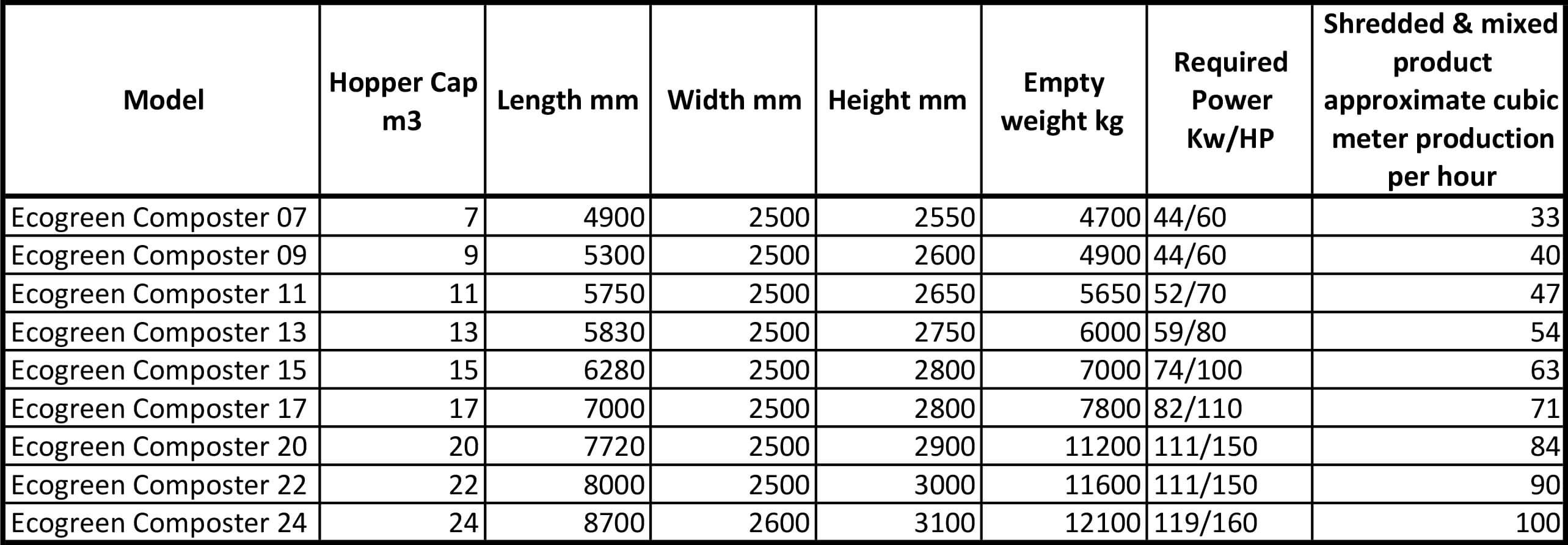 The ECOGREEN COMPOSTER series adopts the “Free Flow Mix” patented technology, enhanced with durable low rpm rotors equipped with special larger diameter and thick tempered blades, adjustable auger scrapers and reinforced bottom.
